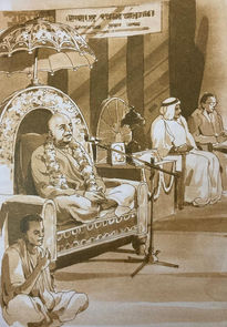 Srila Prabhupada entrusted the Bengali rendering of his works to Maharaja and for almost 20 years this important service was his primary focus. The translation work was completed in 1995 and in 1996 Maharaja presented his service to Srila Prabhupada on his Centennial anniversary.